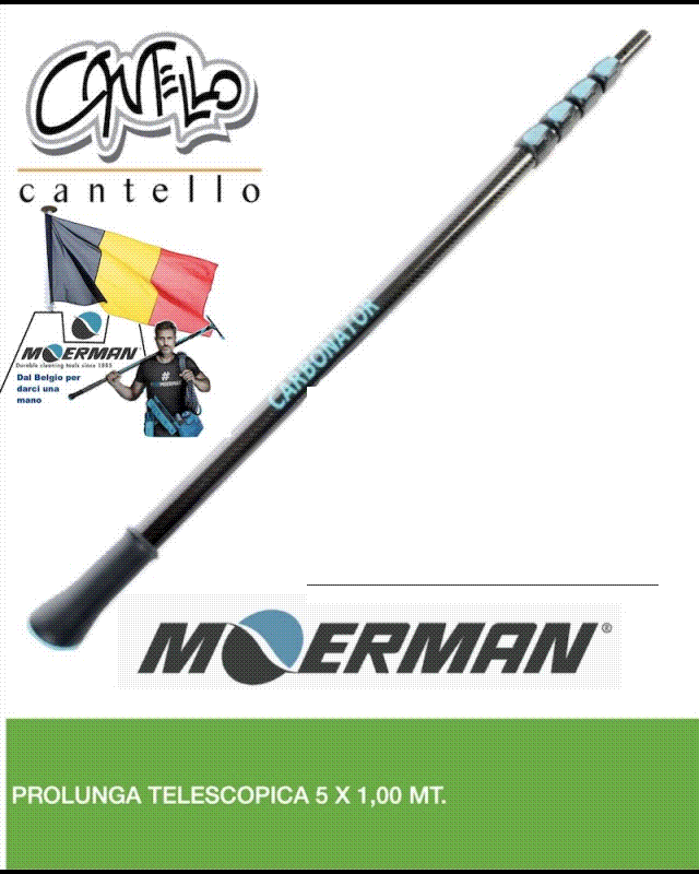 Prolunga telescopica in carbonio mt. 5 (5x100). Moerman è un’azienda belga specializzata in attrezzature per la pulizia professionale, attrezzi per vetri in altezza e accessori ergonomici per operatori professionali. Molto conosciuta nel mondo delle imprese di pulizia e dei tergivetristi per la qualità dei prodotti offerti. È considerata un marchio innovativo e di fascia medio-altaATTENZIONE: per ordini con importo totale inferiore ad euro 400,00 (al netto dell'IVA) verranno conteggiate le spese di spedizione in relazione al luogo di consegna. Avete richieste particolari o vorreste avere altre informazioni? Avete bisogno di fare un grosso acquisto di questo prodotto?Cliccate qui per inviarci le vostre richieste Vi risponderemo nel più breve tempo possibile. Seguiteci sulle pagine Facebook "Cantello srl" e "Lo Puliamo Noi"