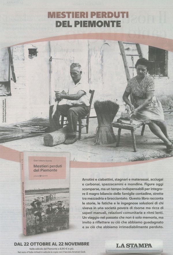 Sul Quotidiano LASTAMPA di oggi 27 ottobre 2025 la presentazione di un libro che evoca mestieri ormai perduti del piemonte.