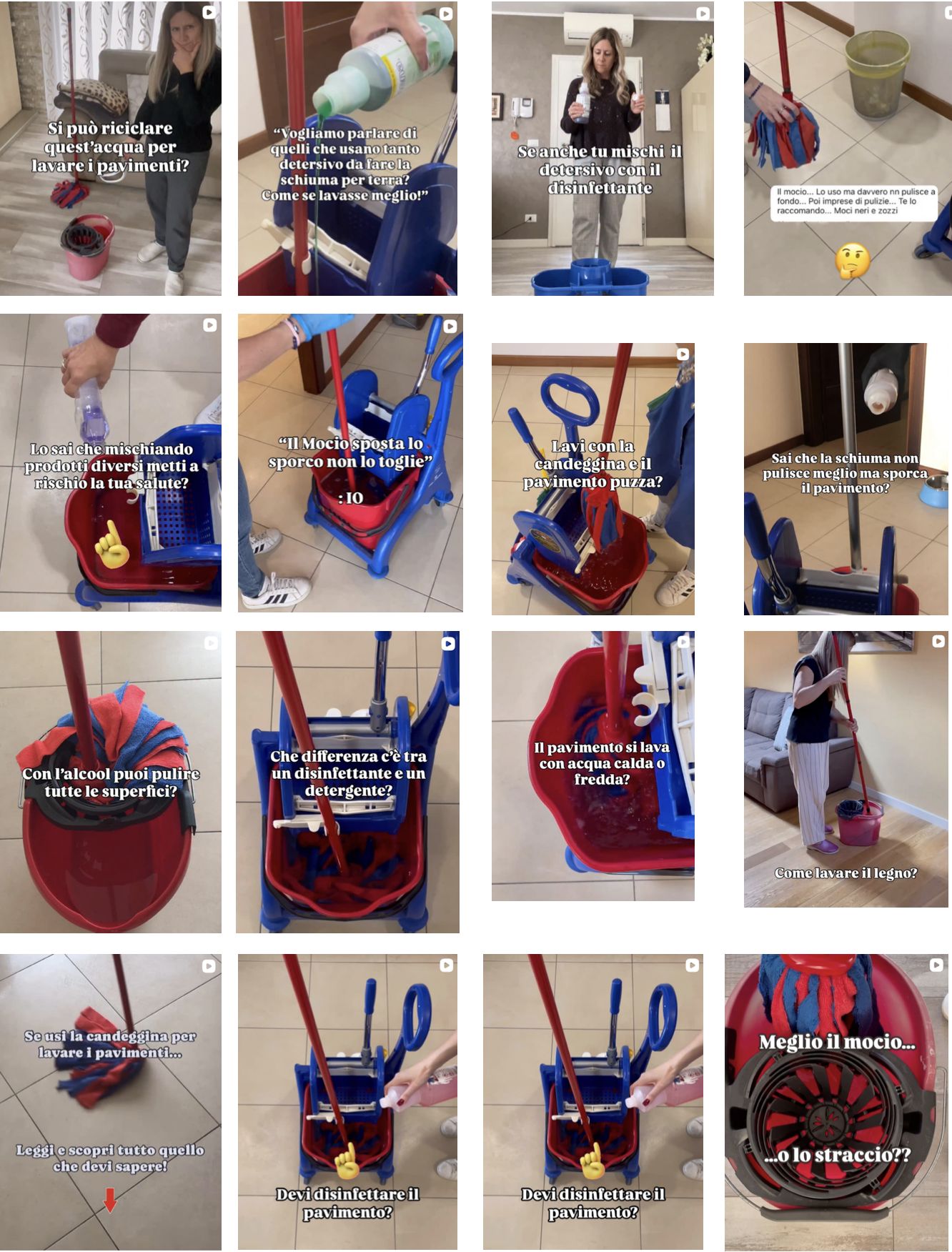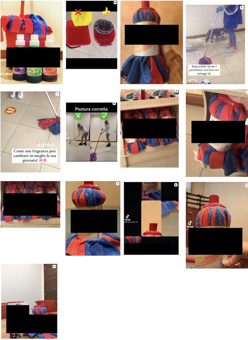 Infatti sul profilo l'uso del mocio è riproposto innumerevoli volte.