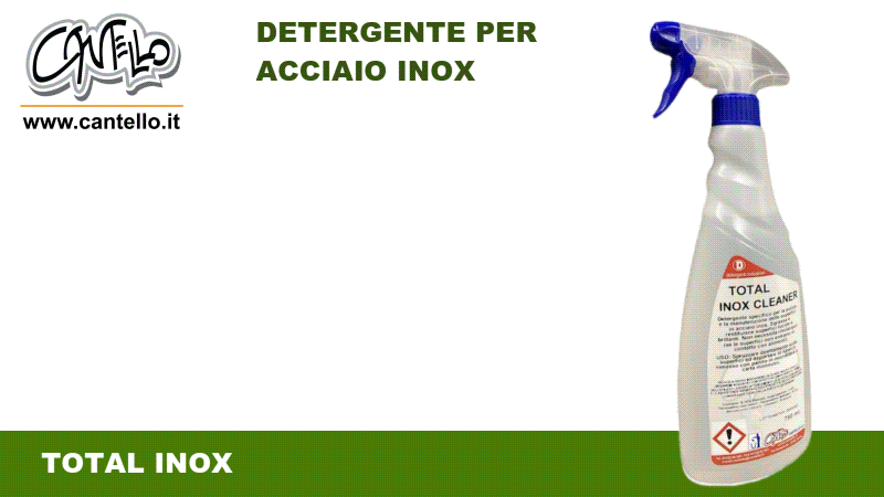 DESCRIZIONE: detrsivo specifico a base alcolica per la veloce pulizia delle superfici in acciaio inox. Particolarmente adatto per cucine in acciaio inox , ascensori, alluminio ed acciai dolci. La base alcolica permette un'ottima azione igienizzante efficace ed una rapida asciugatura. Non necessita risciacquo se le superfici non vengono a contatto diretto con alimenti. Rende superfici pulite e brillanti senza aloni.L'elevato contenuto in alcool permette inoltre una veloce rimozione di macchie di inchiostri, segni di biro e matite, pennarelli, ecc.